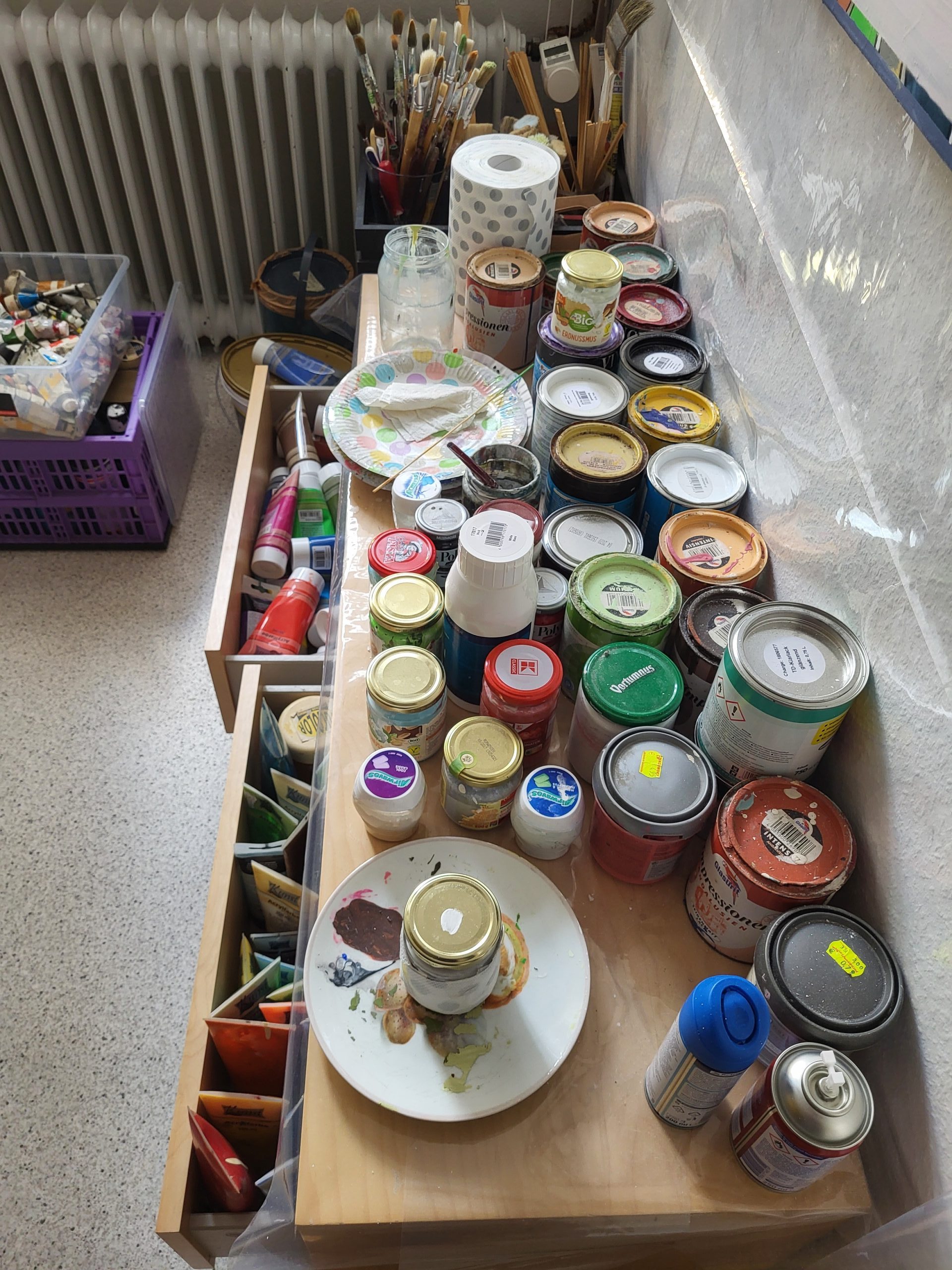 Mein Atelier befindet sich in der Speyerer Str. 109, zwischen dem Kino und der Fahrschule, im Hinterhof. Das Atelier ist mit einem Ausstellungsraum verbunden, in dem meine Arbeiten besichtigt werden können.